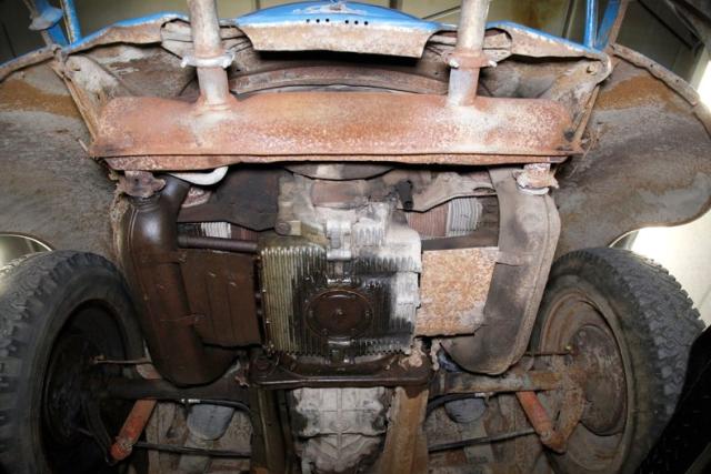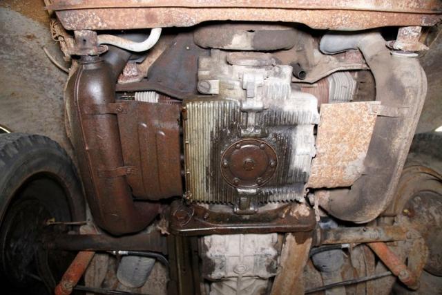 A 1200cc horizontally opposed 4-cylinder engine sits in the rear of this car. It has a 1-barrel Solex carb on top, and a 4-speed manual transmission. Power is transferred to the tires via a 4.375 final drive geared axle. The engine appears with some patina and surface rust is noted within the bay on the bottom edge.