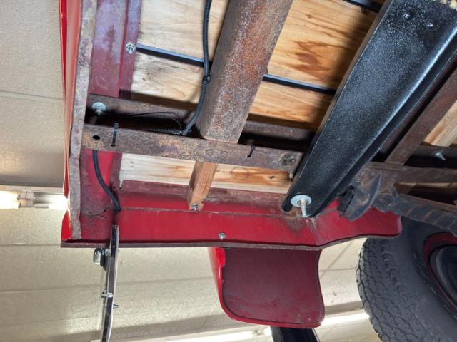 Driver quality underneath with some typical surface rust and residual oil on the pan and rear differential but no visible leaks. Drum brakes are at all four corners and so are leaf springs, while the single exhaust finds a stock style exhaust and exits out back. A touch of surface rust is noted on the door bottoms.
