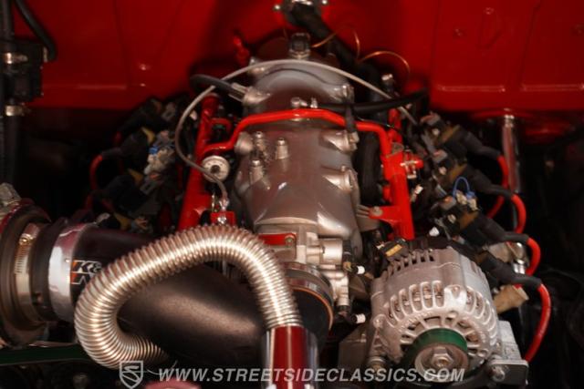 Beneath the hood lies a robust 5.3L V8 engine, fuel-injected for enhanced reliability and power, complemented by a Texas Speed cam and serpentine belt setup. The aluminum radiator and K&N cold air intake system keep the engine cool and breathing efficiently. Paired with a smooth-shifting 3-speed automatic TH350 transmission, this restomod delivers a driving experience that\'s both spirited and dependable. The suspension is factory style but lowered for an aggressive stance, and the drivetrain includes a strong 10-bolt rear axle with an S10 rear end, ensuring solid handling and traction.