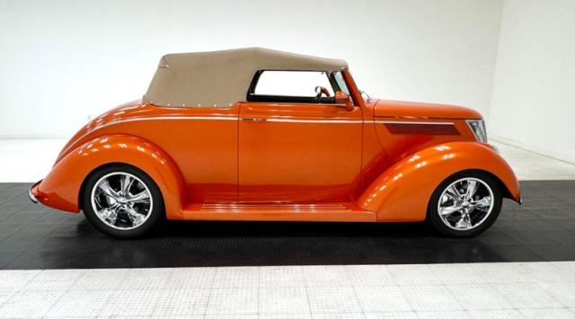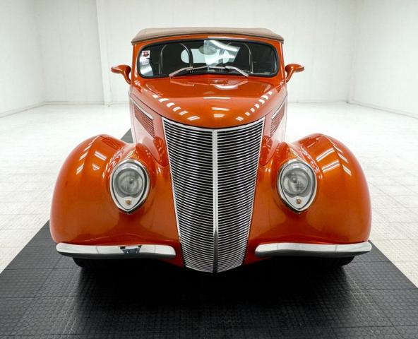 For consignment, a 1937 Ford 85 Deluxe cabriolet showing 318 miles, but the true miles are unknown. This is a modernized, no expense spared street rod with a 6.2 LS3 engine.