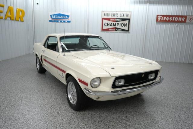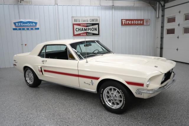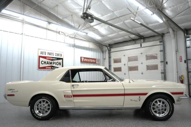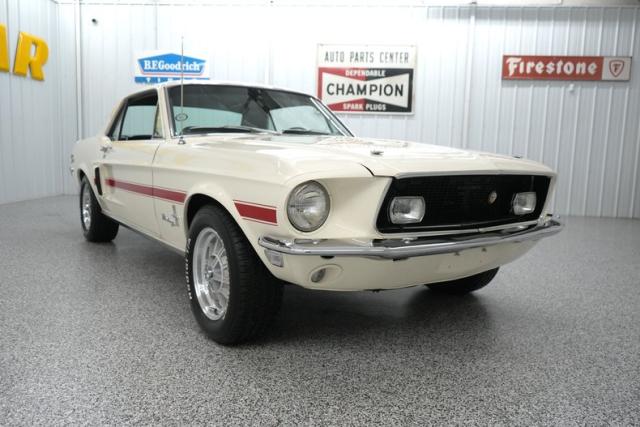 THIS VEHICLE IS LOCATED IN OUR PA. SHOWROOM, FREE SHIPPING AND WARRANTY !!!!! Period Correct 289cid Small Block Ford Engine. C4 Automatic Transmission. Front Drum Brakes. Rear Drum Brakes. Front Tires: 225/60/15. Rear Tires: 225/60/15. BFGoodrich Radial TA Tires. 15 Inch Wheels. Ford 8 Inch Rear End. Cast Aluminum Intake. Edelbrock 1406 600cfm 4 Barrel Carburetor. Electric Choke. Stock Style Distributor. PerTronix Flamethrower II Coil. Mechanical Fuel Pump. Factory Points Ignition. Steel Radiator. 6 Blade Cooling Fan. Pebble Beige Exterior. Red California Side Stripes. Chrome Front & Rear Bumpers. GT Fog Lights. Hood Pins. Hood Scoops. Hood Mounted Turn Signals. Bright Window Trim. Bright Rocker Moldings. Quarter Panel Side Scoops. Drivers Side Mirror. 120MPH Speedometer. Black Vinyl Interior. Black Carpeting. Black Headliner. Black Door Panels. Front Bucket Seats. Rear Bench Seat. Seat Belts. Black Dash. AM/FM/Cassette Radio. Center Console. Trunk Mat. Full Size Spare Tire. 3/4\" Front Sway Bar. 2\" Dual Exhaust. Crosspipe. Xlerator Mufflers. Double Dual Chrome Slash Cut Exhaust Tips. KYB Excel G Front & Rear Shocks. Finned Aluminum Valve Covers. Chrome Strut Tower Brace. Chrome Fender Brace. Chrome Fan Shroud. Edelbrock In-Line Fuel Filter. Finned Aluminum Air Cleaner Lid. Aluminum Shelby Style Wheels. Red Oxide Floors. Marti Report.