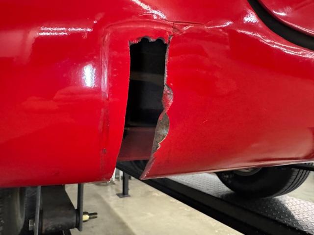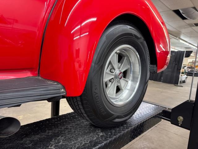 Clean conditions prevail underneath with a transmission cooler fan is the first thing we encounter ahead of the rear axle. Headers send a pair of pipes that enter Thrush mufflers just before heading to the sides and exiting under the running boards. A Wilwood master cylinder feeds the disc brakes in front and drums in back while suspension includes a Mustang II front end and leaf spring with traction bars in back. A driveshaft loop is present in this rust free environment.