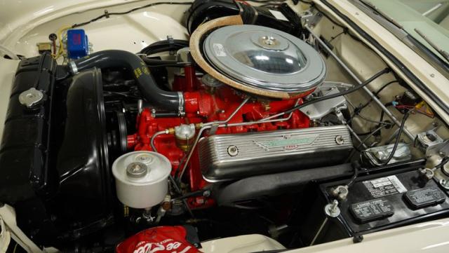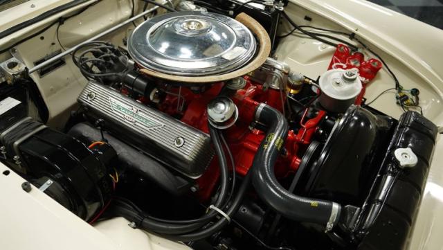 Beneath the hood lies a 312 V8 engine, enhanced with a Holley four-barrel carburetor, coupled with a smooth-shifting 3 Speed Automatic Ford-O-Matic transmission, and supported by power steering. The engine bay, a visual treat, displays a level of restoration that respects the original design while incorporating front disc brakes and other subtle upgrades for improved drivability.