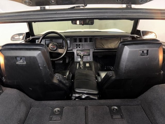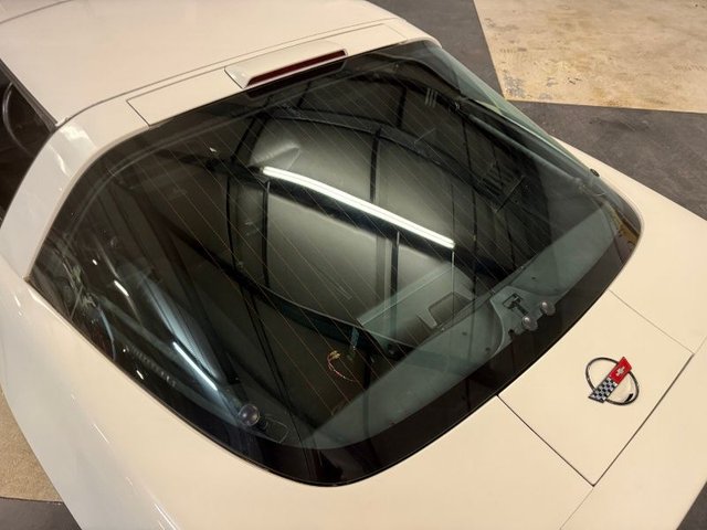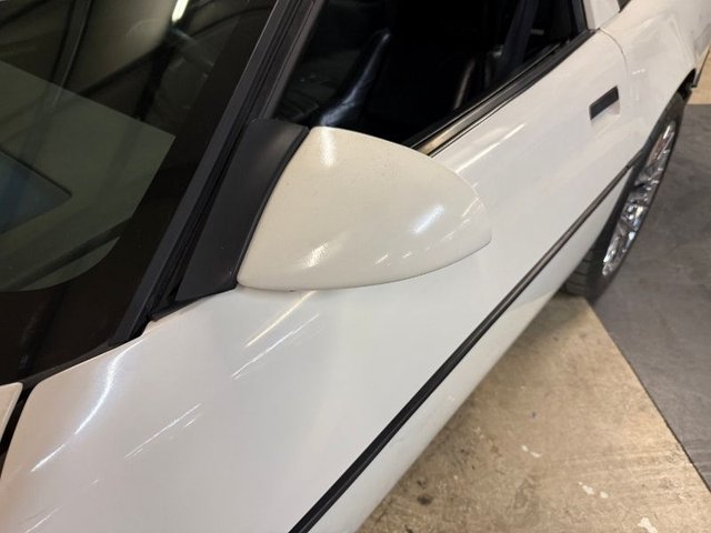 Painted White with a removeable top that looks good. All glass is tinted. There are dual outside mirrors, rubber, spoiler in front all look good. Flip up headlights work and all the emblems are good. The door handles are good. Chrome aftermarket rims with Mickey Thompson Street competition tires. This car looks good!