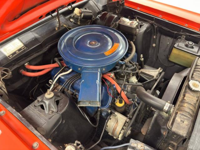Ford Blue colors the 351ci Windsor V8 under the hood and the Holley 4-barrel carb supplied powerplant is good for 290 horsepower. The shifter on the column operates the FMX 3-speed automatic transmission and sends power to the Ford 9\" with 3.25 gears in back. Power brakes are supplied with discs up front and drums in back.