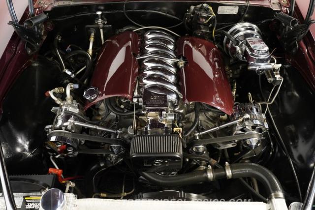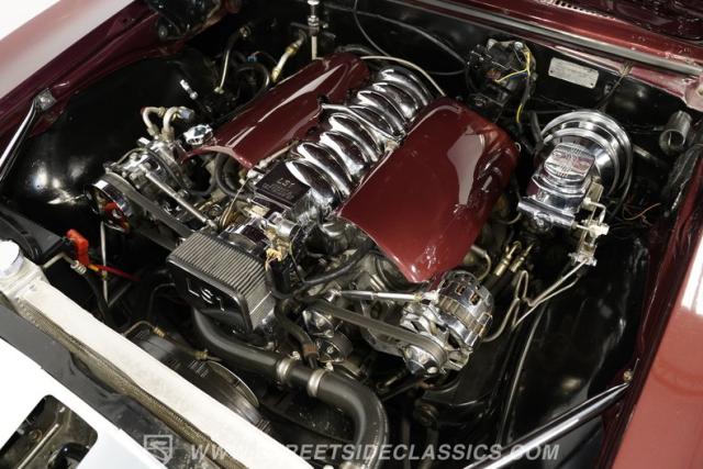 Under that swoopy hood, we find an aluminum 5.7-liter LS1 V-8 engine. Sporting body-color valve covers on top of lightweight aluminum 853 heads, a polished intake manifold, custom camshaft, and an aluminum radiator complete with an electric fan, this small block is capable of producing yesteryear\'s big block levels of power. Those ponies are routed through a 4L60E four-speed automatic transmission before being sent out to the ten-bolt rear before reaching those stellar 18-inch rear wheels.