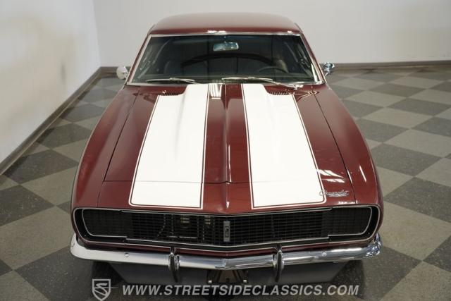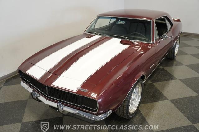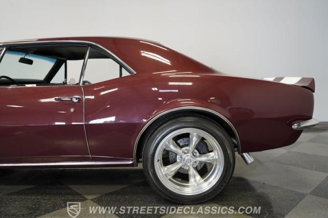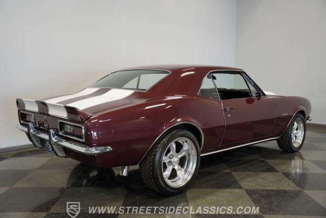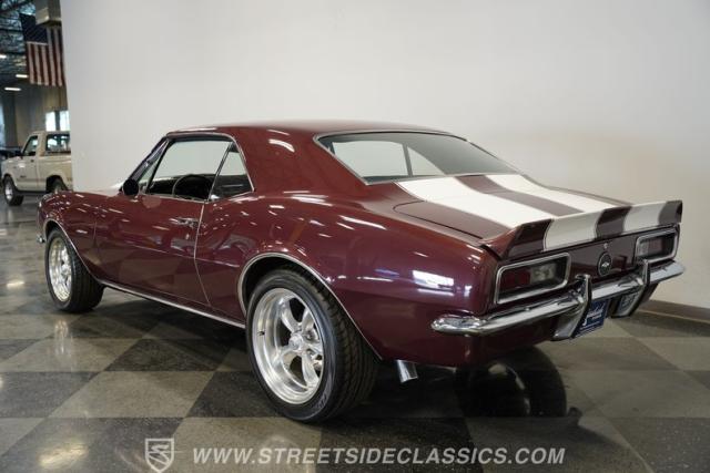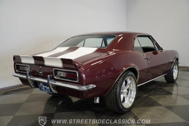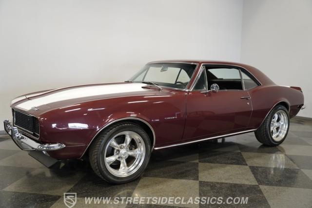 Few things can be as alluring as the sight of a properly done restomod. Blending the beauty of yesteryear\'s design with the efficiency and convenience of modern technology, this 1967 Chevrolet Camaro RS tribute LS1 Restomod is truly one of a kind. Fully repainted in its original Madeira Maroon, complete with dual full-length white RS stripes, this 2nd Gen features an a subtle front lip spoiler, and a more obvious rear deck spoiler and cowl hood. Though it may not be a true Transformer, its polished American Racing Torq Thrust II rims wrapped in modern rubber suggest there is more to this Camaro than meets the eye.