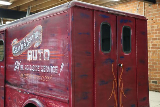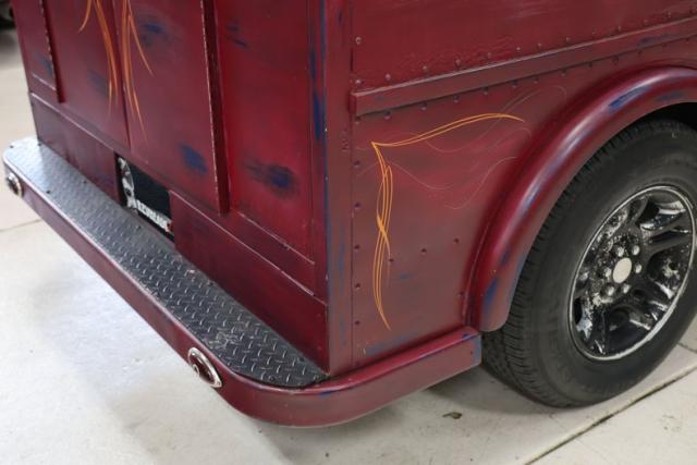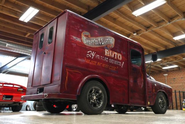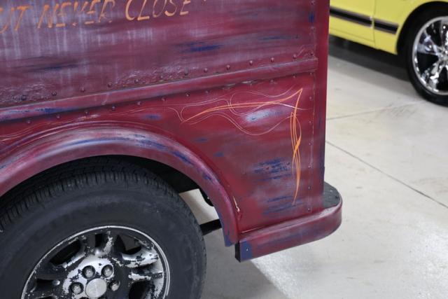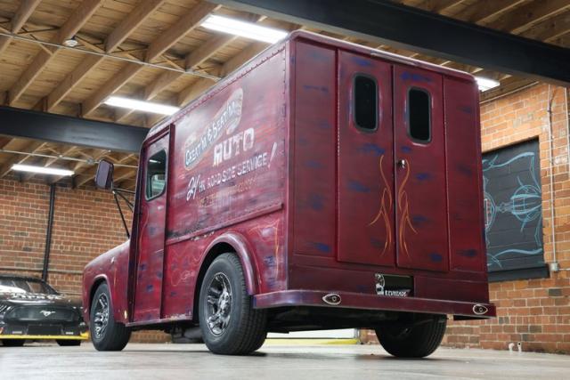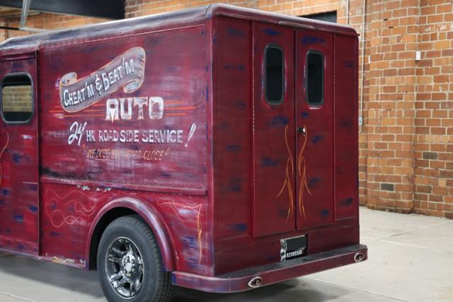 The look is pure character. Finished in a worn red and blue patina, this Dodge wears its attitude on the outside like a badge of honor. Two sliding side doors and dual swing-out rear doors keep the classic milk truck vibe alive, blending old commercial roots with custom cruiser swagger.