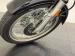 Billet housing is used for the thumb controls on the handlebars and the printed labeling for the switchgear is crisp and clear with twin configuration on the left and right, a single toggle with two push buttons below. The two gauge are split and individual with tach on the left and speedometer on the right while two indicator lights top the headlight housing. A rubber coated kick starter and footpegs share the bike\'s flanks with rectangle side reflectors while side mirrors ride high on the handlebars.