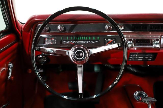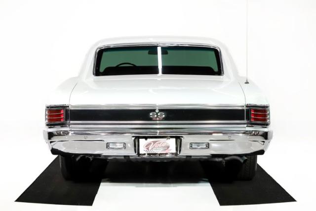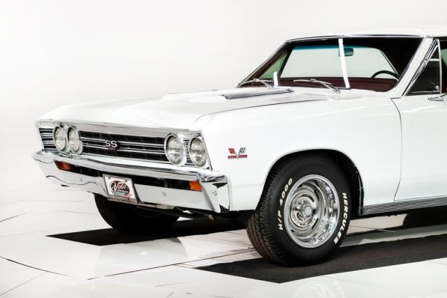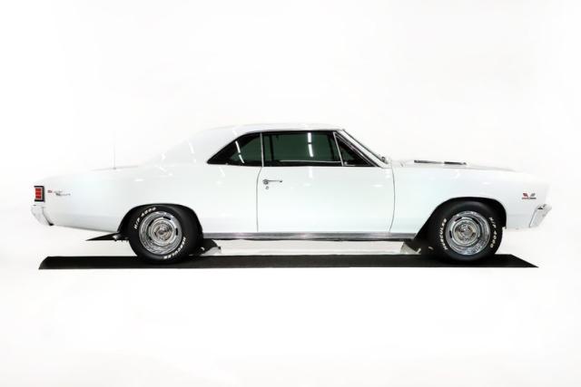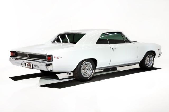 EXTERIOR: It has a very handsome body, highlighted by the SS hood with dual domes and chrome vents. The body is straight with no visible rust or damage, and it\'s been repainted its original Ermine White without a vinyl top, complemented by the blacked-out tail panel. The paint has a \"white glass\" finish-smooth, glossy, and eye-catching. The SS badging, chrome, and trim all present beautifully. It features a rear-mounted power antenna, tinted glass, and replaced weatherstrips. It\'s sitting on 15x8 Corvette rally wheels with correct 1967 center caps, giving it the perfect stance and finishing touch.