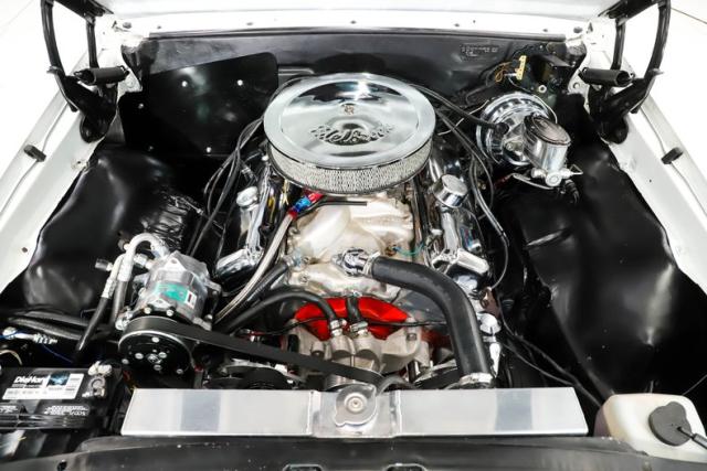 ENGINE COMPARTMENT: This built 454 has less than 600 miles on it and delivers serious performance. It features a Summit cam, aluminum heads, Edelbrock intake, and a big dual-feed Holley carburetor, and an HEI ignition. It runs cool thanks to an aluminum radiator, dual electric fans, and an aluminum water pump. A modern air conditioning system keeps the passengers comfortable and is driven by a CVF serpentine belt setup with billet pulleys. Power steering and power brakes make it effortless to drive, and it\'s equipped with a Wilwood master cylinder for confident stopping power. The engine bay is exceptionally clean and organized, dressed with some extra chrome and ready to impress at any show or cruise night.