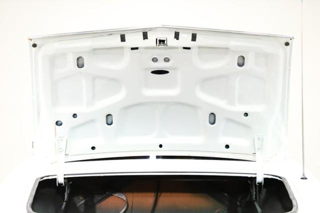 TRUNK COMPARTMENT: Under the trunk lid and in the jamb, the paint is finished nicely. Inside the trunk is solid and detailed with a correct spatter finish. The floor has Dynamat sound deadener topped with a custom-cut carpeted mat.