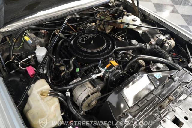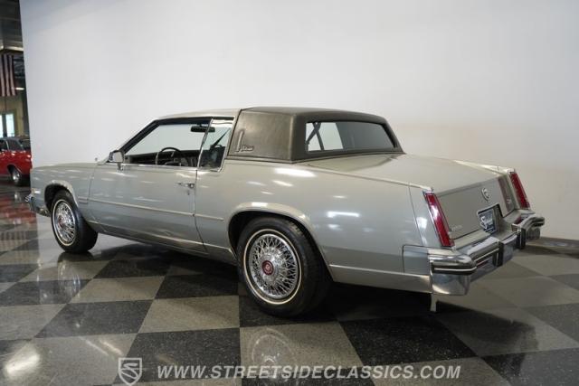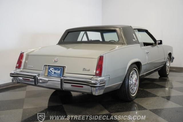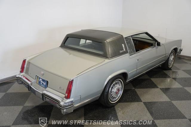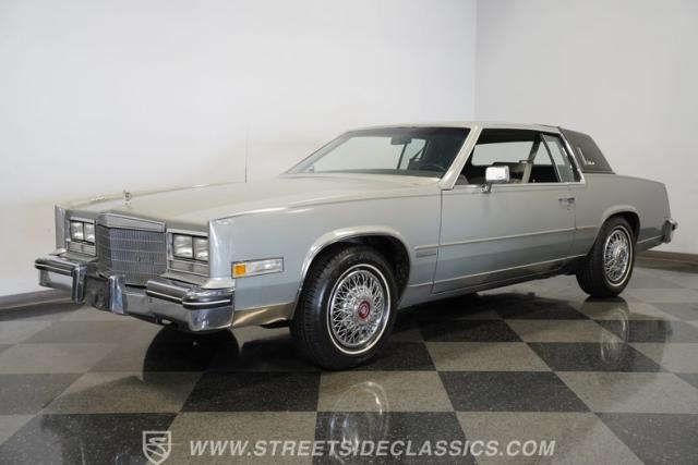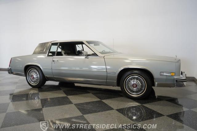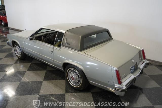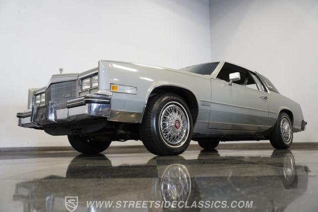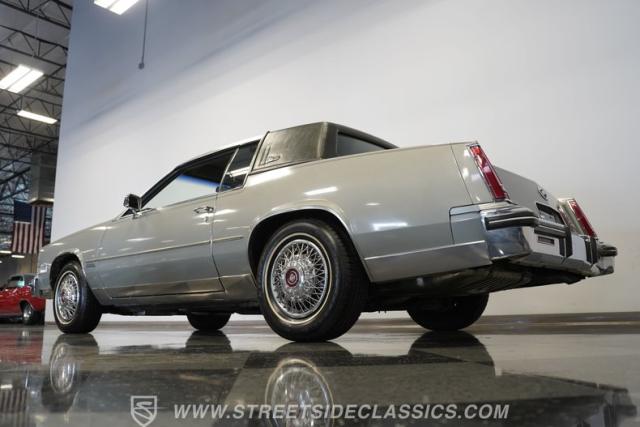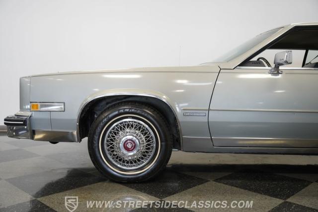 As it rolls into view, the 1983 Cadillac Eldorado exudes an air of elegance that\'s hard to ignore. Its Silver Metallic exterior glistens under the sun, a shade that whispers luxury rather than shouting it. This Cadillac rides on 15\" wheels encased in 205/75R15 tires, a pairing that promises a smooth sail over the pavement. The chrome trim gives this vehicle an extra dose of sophistication, while the soft-close trunk adds a touch of modern convenience to the vintage charm.