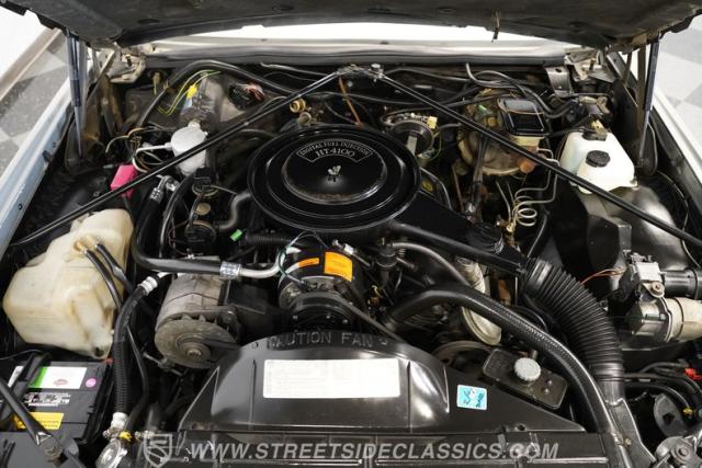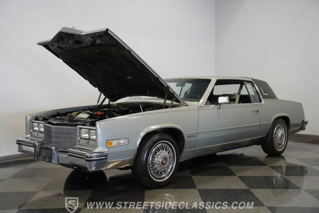 Power from the 4.1L V8 engine, complemented by a 4-speed automatic transmission with overdrive, stands ready to deliver smooth acceleration. This setup, along with features such as fuel injection, power 4-wheel disc brakes, power steering, and a fully independent suspension, ensures that this Eldorado doesn\'t just look good-it feels good to drive too. The engine bay\'s cleanliness and organization reflect meticulous maintenance, hinting at the attention this Cadillac has received.