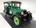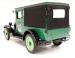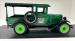 A steel hood, radiator cowl, body, and bumpers are bathed in a beautiful coat of shiny green that is well applied. Black paint covers the curved fenders and running boards as well as the dual bar bumpers front and rear. A two seat cab with a small rectangular rear glass section prior to the bed is noted. The roofline extends from the front windscreen to totally covering the bed. The bed sides are steel and the base is green shiny painted wood planks and these are in unused condition. Steel bars extend upward from the inner corners of the back of the bed next to the tailgate. These support the covering of the roof and bed. Here we have a like new canvas top to keep your goods and sundries safe during transport. This canvas also presents itself on the sides and back so the bed and goods within can be totally covered. 21-inch lime green total steel artillery styled wheels are on all 4 corners and are wrapped in like new 4.40/4.50-21 rubber. There is a spare tire attached to the passenger\'s side.