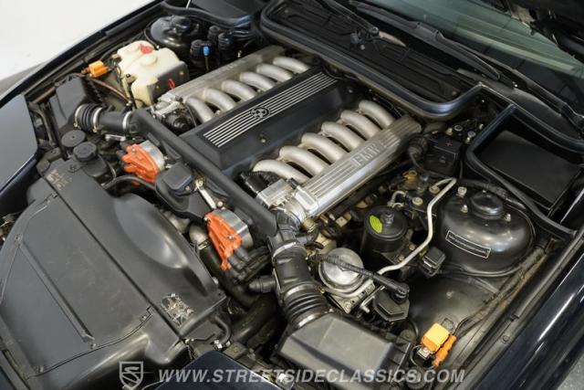 This seldom seen German import is powered by an electronically fuel-injected 5.0-liter V12 engine that\'s in fine running form. It sits in a well-maintained compartment, surrounded by properly routed wiring and fresh-looking hoses and it fires up with no hesitation, idles smoothly and offers strong performance, pairing with a 4-speed automatic transmission to form a rock-solid drivetrain. Smooth, precise power steering makes for easy navigation and, with its wide, low-slung stance combined with a coilover suspension, this 850 really handles nicely, as indicated by the impressive .88g skidpad rating it pulled when it was first introduced. Its four-wheel power disc brakes feature sizable, vented rotors for excellent heat dissipation, and bring it to quick stops with no fanfare.