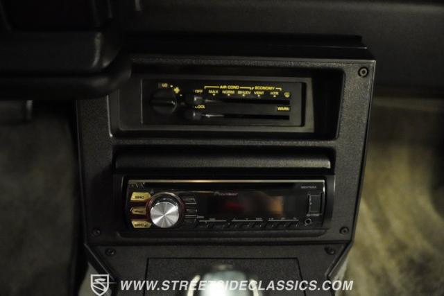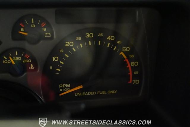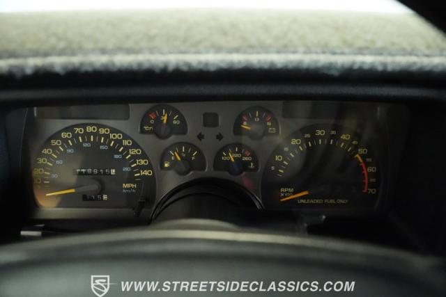 Inside, we find a cool grey leather interior that looks great for its age. A center console separates a pair of plush and supportive bucket seats, with the driver\'s seat getting power adjustment. The padded and power-assisted four-spoke steering wheel sits just forward of the original six-pod analog gauge cluster, which features a 140 mph speedometer and a 7,000 RPM tach. Reminding you of how easy driving used to be, the slider and knob HVAC controls allow simple temperature control and include functioning air conditioning. Thankfully, though, the stereo has embraced modern tech and been upgraded to a Pioneer AM/FM/CD/AUX head unit. Power locks, windows, and mirrors along with cruise control offer plenty of modern amenities for an early 1990s vehicle. A well-placed 25th Anniversary Commemorative Edition sits on the glove box door panel to remind you that this is no ordinary Z/28.