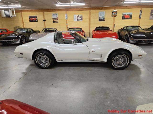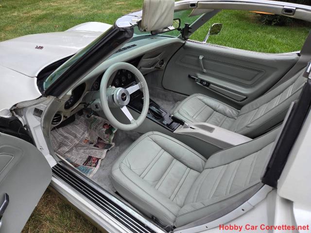 1977 White Corvette Smoke Gray Interior For Sale For more information visit: https://www.hobbycarcorvettes.net/corvette/1977-white-corvette-smoke-gray-interior-for-sale CASH PRICE: $ 19000 Transmission: Automatic Engine: L48/350 Mileage: 3,401 on dash Details Numbers matching, L48/350, automatic transmission, 3,401 miles on dash, smoke gray leather interior, rally wheels, power steering, power brakes, power windows, tilt and telescopic steering column, AM/FM/CD radio, A/C, original ignition shielding, original air cleaner assembly, and much more. We changed the oil and filter, transmission fluid and filter, and checked and lubed the chassis. We replaced the upper and lower control arm bushings, upper and lower ball joints, front shocks, front brake calipers, front brake pads, front brake hoses, sway bar links, selector seal, leaf spring rubbers, power steering hoses, water pump, complete carpet set, and much more. 1977 was the last year for the short back window. It was also the first year without Stingray badges on the fenders, and saw the return of the black exterior color option. Each early 1977 also had a polished horn cap, which was later recalled due to safety concerns over the sun glaring on it.