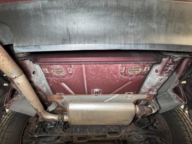 Plenty of surface rust but none of the damaging stuff and no errant fluid anywhere either. Power disc brakes are supplied to all four wheels and a single exhaust runs through a stock style muffler before exiting through a polished tip splattered with surface rust spots. Independent suspension graces front and rear with Macpherson struts in the front and a transflex leaf spring in back.