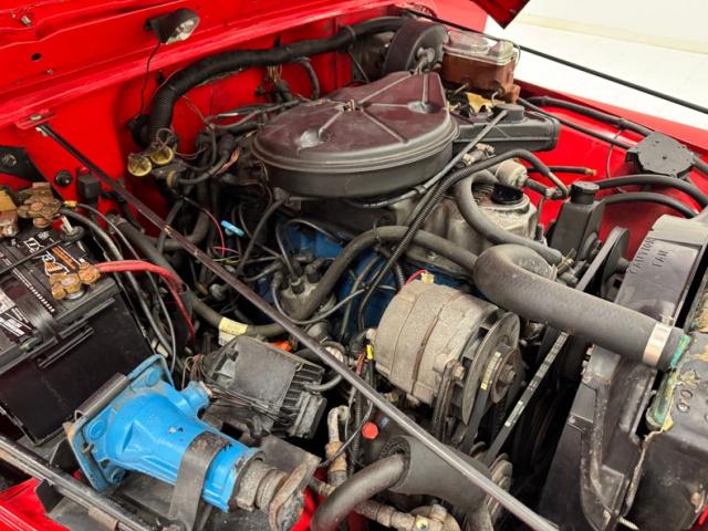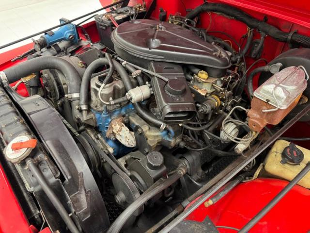 Clean, driver quality aesthetic condition is how we find the 4.2 liter inline six cylinder, putting out 112 horsepower and fueled via a 2-barrel carburetor. It is mated to a 5-speed manual transmission that can split power between the front Dana 30 and rear Dana 35 axles.