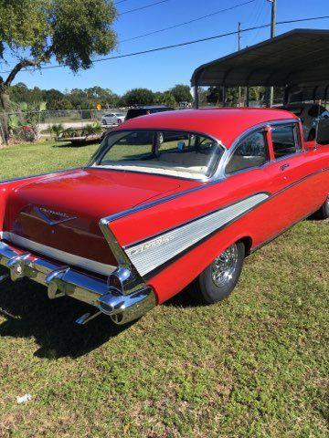 1957 Chevy Belair coupe red with white interior, Beautiful repaint done 30 years ago , rust free car has had update Chevy 350 small block . Turbo 350 transmission ,power Disc brakes, original a.m. radio and a dash with a modern stereo hidden in the glove box ,Runs and drives perfect. Is stored with car cover on it inside my warehouse clear Florida title . same owner for 30 years until he passed away six months ago. Please Note The Following **Vehicle Location is at our clients home and Not In Cadillac, Michigan. **We do have a showroom with about 25 cars that is by appointment only **Please Call First and talk to one of our reps at 231-468-2809 EXT 1 ** FREE Consignment Visit Our Site Today Easy To List Your Vehicle and Get it Sold in Record Time.