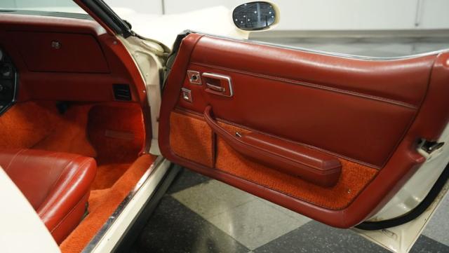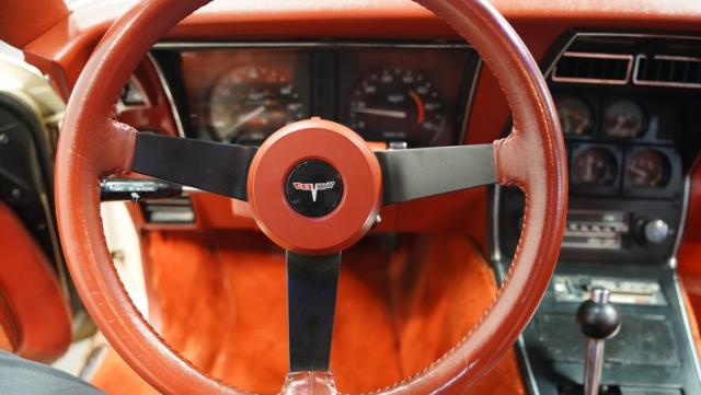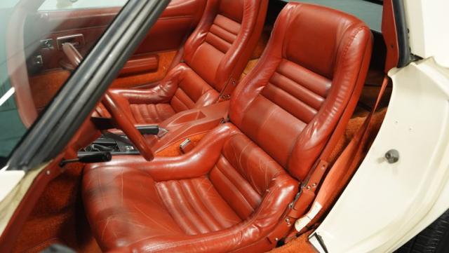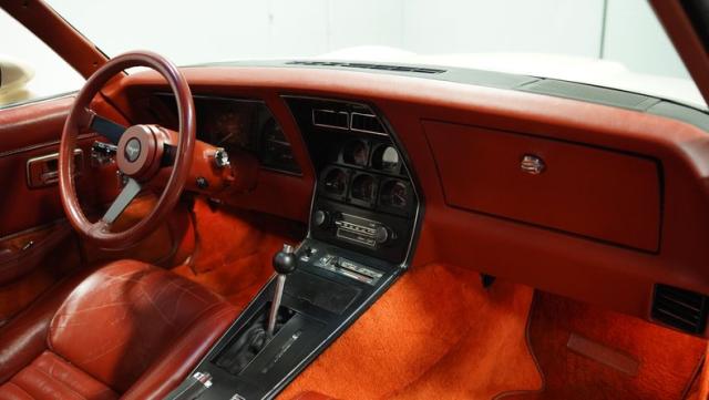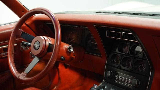 Medium Cinnabar leather adorns the interior, creating a driver-focused environment built for serious motoring. Supportive bucket seats keep you planted during spirited driving, while the center console houses the shifter for the 3-speed automatic transmission. An AM/FM radio stands ready to provide the soundtrack for your journey. Power windows, locks, and steering offer effortless control. The driver-oriented dash puts all gauges and controls within easy reach, reinforcing the Corvette\'s performance-first philosophy.