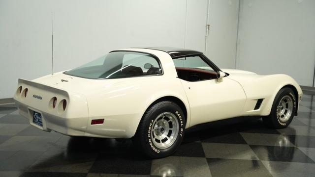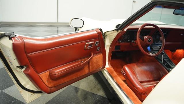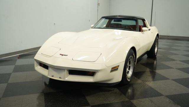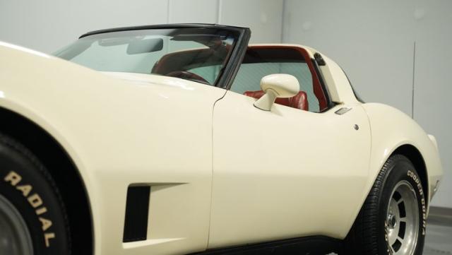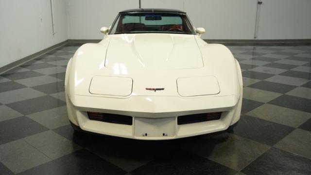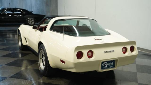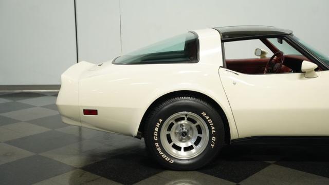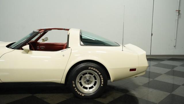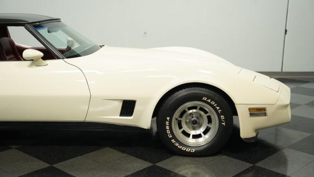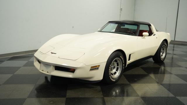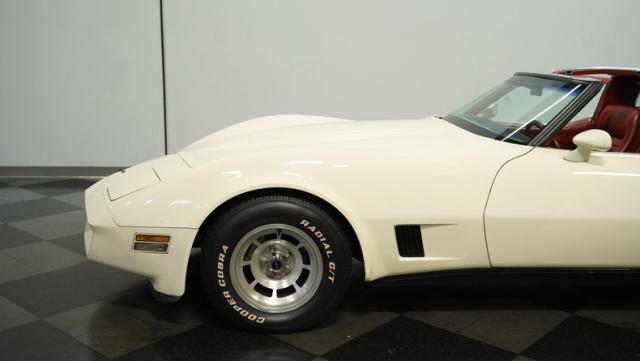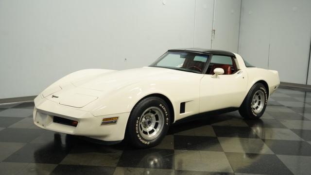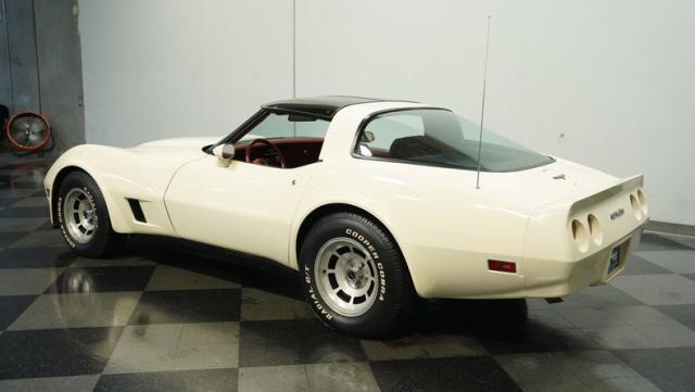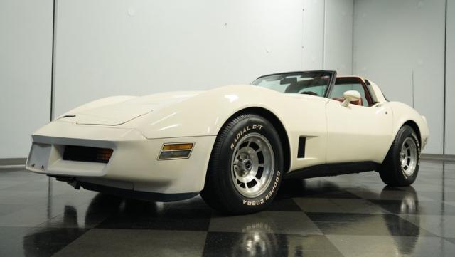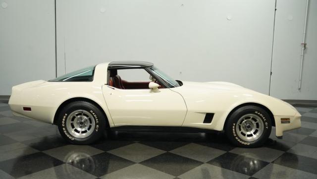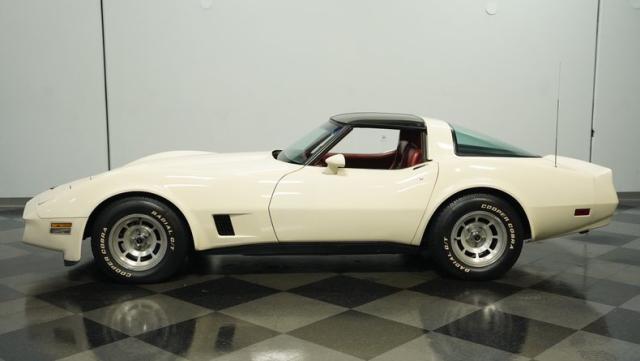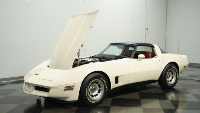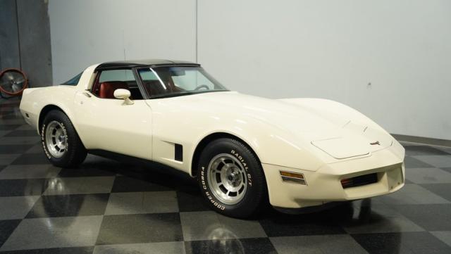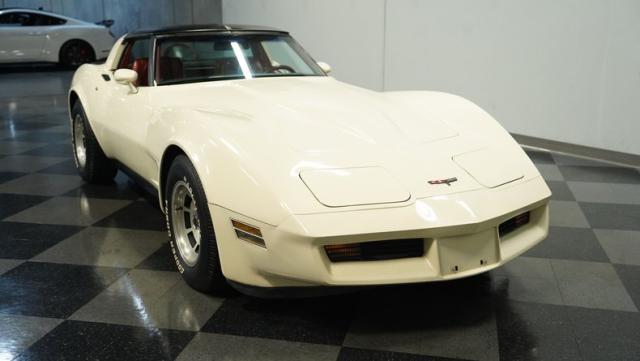 This 1981 Chevrolet Corvette boasts a rare single-family lineage, purchased new from Beaty Chevrolet in Knoxville. Its Cream Beige exterior gleams in the sunlight, a testament to decades of meticulous care. The C3\'s iconic silhouette remains as striking today as it was in \'81, with T-tops ready for open-air adventures. Rolling on 15-inch wheels wrapped in beefy 225/70R15 rubber, this Corvette combines classic style with road-gripping performance. Chrome accents complement the sleek bodywork, creating a quintessential American sports car aesthetic.