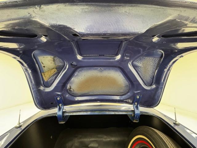 Dipped in beautiful blue metallic, this paint job was the definition of attention to detail. A few scratchers and a dent or two are around, but overall, it presents in very nice condition. If you are into chrome, and brite work spears aplenty, this car has it in tasteful doses with a 360-degree belt line trim, rear quarter spears that surround the taillights eventually, and lots of bumper, window surround, headlight visors, and grille work to boot. All in very good condition. Throw in some horizontal fender skirts, wide white wall tires, a continental kit, and we are ready to go to the local drive-in movie and vie for some backseat action.