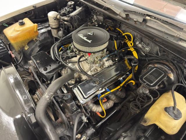 Here we have a 350ci V8, fitting with no problem at all and topped by an Edelbrock 4-barrel over and Edelbrock intake manifold. It\'s backed by a TH350 3-speed automatic sending power to the 10 bolt axle out back. Headers are heat wrapped and yellow spark wires add some color to the driver quality bay. Our consignor states a new battery and starter have been added under his tenure.