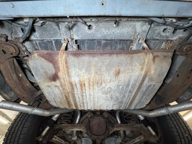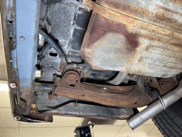 Typical and extensive surface rust is present mixed with dry condition and some rust through on stamped panels is noted. Power disc brakes are employed up front and power drums at the other end. Dual exhaust flows from the headers to Turbo mufflers and exit just behind the rear wheels and fender. There is no catalytic converter on board. Suspension consists of coil springs up front and a 4 link with coil springs in back.