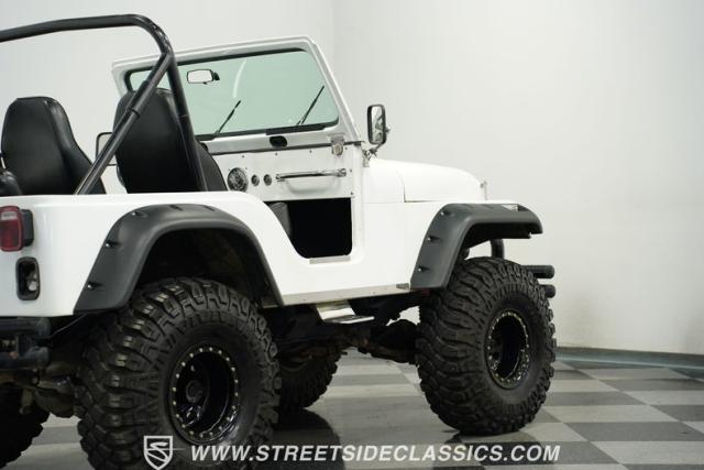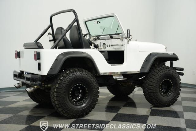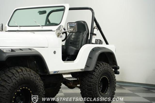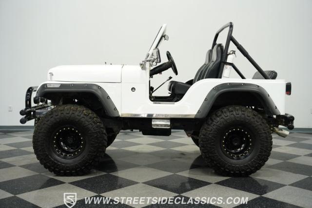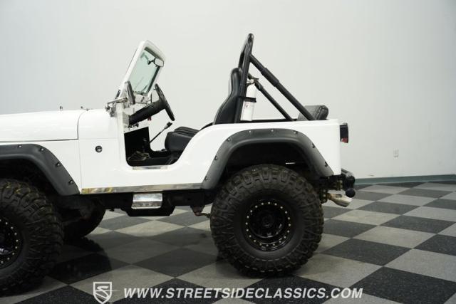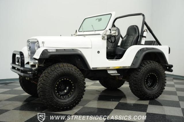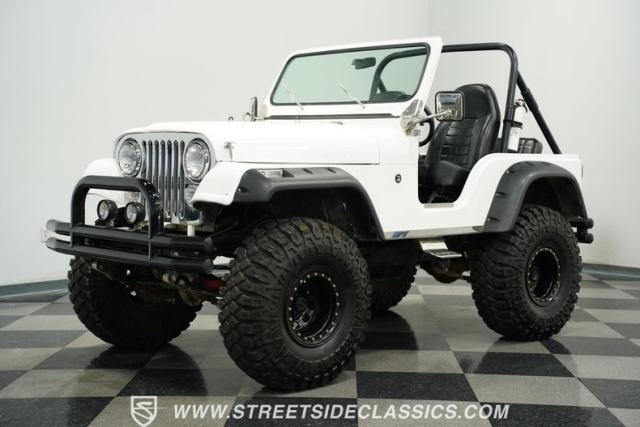 While so many trucks over the years have tried to convince us that they are tough and off-road-ready, one look at this 1979 Jeep CJ5, and it\'s easy to see what rugged really looks like. Redone with a full fiberglass replacement tub and repainted in this brilliant white, this CJ5 features exterior upgrades, including a tubular bull bar and trail lights up front, side steps and fender flares along the sides, and a tow hitch and tubular bumper in the rear.