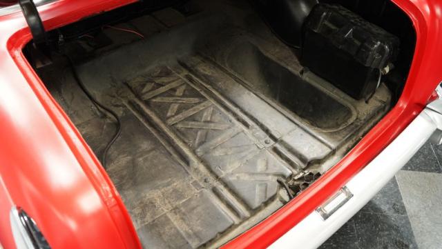 Beneath its skin, this beast pulses with the power of a 454 V8 engine, seamlessly integrated into its new setting. This powerplant is coupled with a 3-speed automatic TH350 transmission, power steering, and brakes, creating a harmonious blend of performance and control. The engine, adorned with an Edelbrock carburetor, aluminum intake manifold, and headers, is kept cool by an aluminum radiator, complemented by both standard and electric pusher fans, with a Coca-Cola radiator overflow bottle.