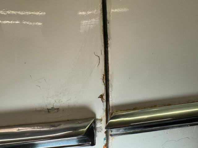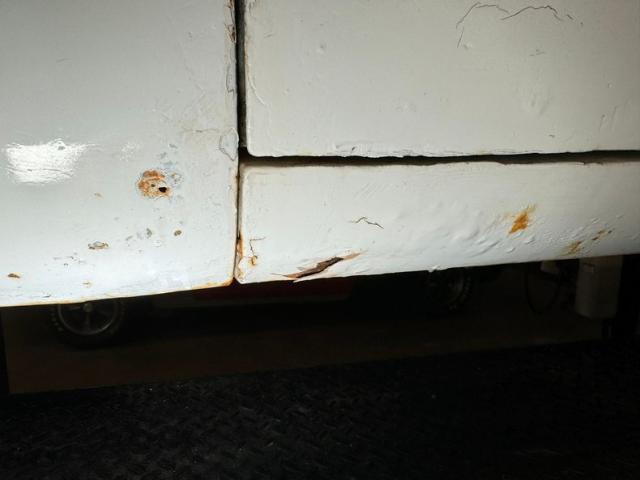 Plenty of heavy surface rust, worn and tattered undercoating and some invasive rust on the inner rockers and body hangers is noted. The frame is solid and rust free and the under door edges are showing some rust and crinkling of the edges. Independent coil springs are on in front and leaf springs for the rear providing the ride and power