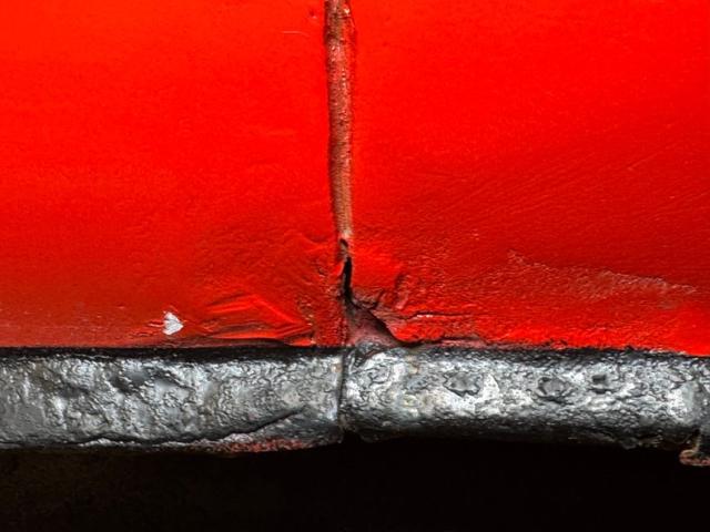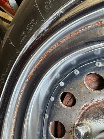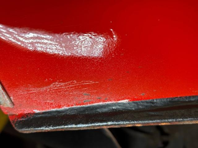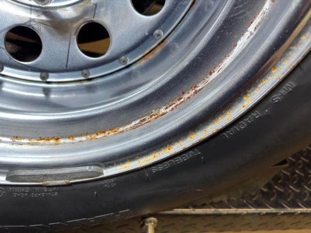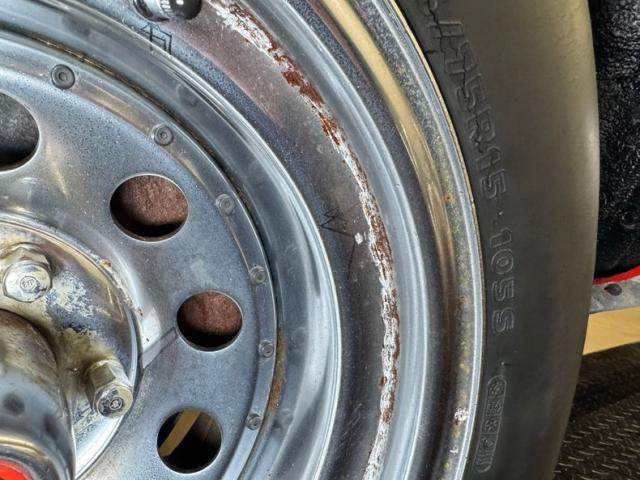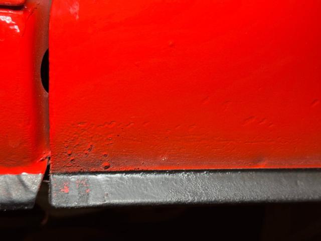 Driver quality under here as well with a good amount of surface rust and corrosion. There are a few spots on the inner panels that have repair panels welded in or spray filler, and there\'s oil on the pan, the flywheel cover, and the rear differential. Dual exhaust includes a pair of glasspack style mufflers before heading straight out the back. Suspension consists of coil springs up front and leaf springs in the back. The bottom of the doors are clean and free of visible rust.
