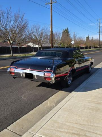 1971 Oldsmobile 442 Black convertible \'real\' 442..no clone/ tribute car here..ram air hood, super stock 1 wheels, Ac, tilt, power windows, cruise control, tachometer guage, hurst dual gate his & hers shifter, original am-fm stereophonic, numbers matching, protecto plate, build sheet, new exhaust x pipe with Super 44 flowmasters, new optima battery, power trunk lid latch, steering wheel (delux) front disc brakes, rear drum, original maintenance record card, original warranty pamphlet, all documentation, underneath vehicle is totally rust free.. This was an original Ebony black car from the factory.. ALL OPTIONS, super rare vehicle..Only 1,304 1971 442 convertibles ever made..Black on black even more rare.. Please Note The Following **Vehicle Location is at our clients home and Not In Cadillac, Michigan. **We do have a showroom with about 25 cars that is by appointment only **Please Call First and talk to one of our reps at 231-468-2809 EXT 1 ** FREE Consignment Visit Our Site Today Easy To List Your Vehicle and Get it Sold in Record Time.