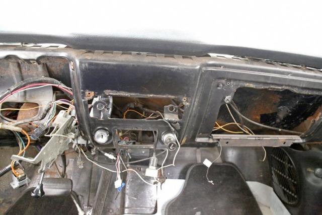 Looking good for the door panels, and front buckets and rear bench. These look to have been completed, and show as originals once did. The floors have plenty of surface rust and no carpeting. The dash is in a state of initial wiring with no gauges hooked up at this time. The board with the gauges is included. A rally steering wheel is attached.
