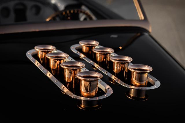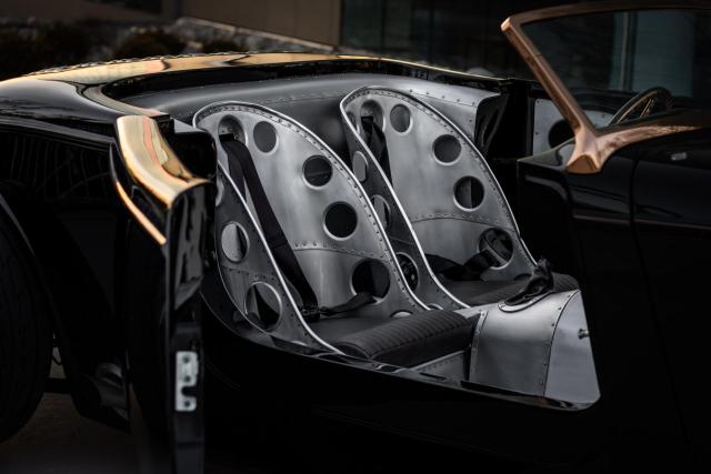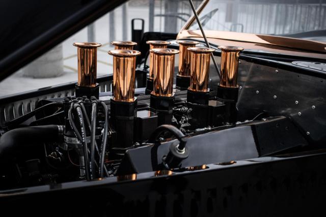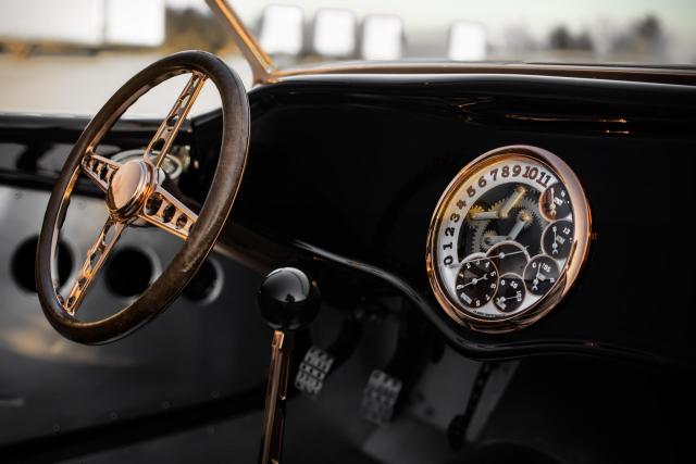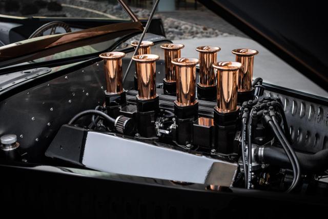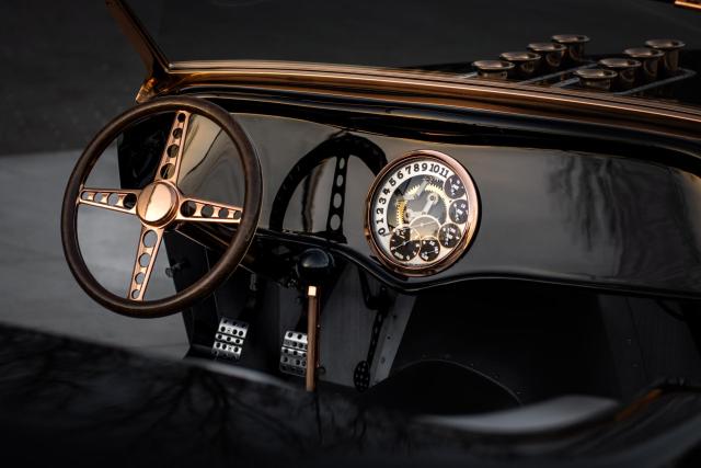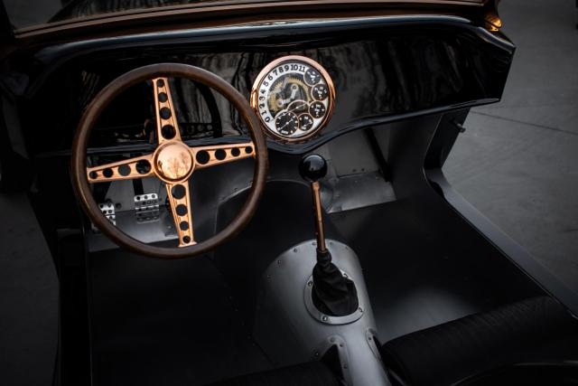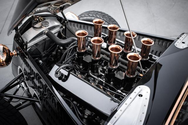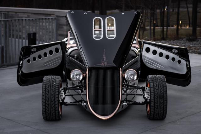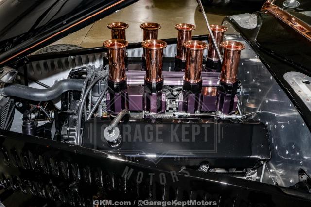 1933 Ford \"Steampunk\" Hot Rod- Massive 510-inch Big-Block Ford: Powered by a beastly 460 stroked to 510 cubic inches by Peters Racing.- Forged Internals: Featuring a Scat 4.150-inch forged crank, forged Scat rods, and JE 4.390-inch forged pistons (10:1 compression).- Imagine Injection System: Feeds twin ported Edelbrock aluminum heads through four Weber-like throttle bodies for aggressive power delivery and stunning looks.- Custom Exhaust: Hand-made stainless-steel headers by West Coast Auto Craft flow into Magnaflow mufflers, ensuring an exhilarating soundtrack.- TKO 600 Five-Speed Transmission: Paired with a Centerforce dual disc clutch for precise gear changes and maximum power transfer.- Factory Five Racing Chassis: Built on a sophisticated steel tube chassis with a 112-inch wheelbase, designed for serious road performance.- Advanced Suspension: Features a Mustang 8.8-inch Ford Truetrac differential (3.55:1) with a four-link rear suspension and inboard coilover shocks.- Precise Handling: FFR\'s unequal-length A-arm front suspension, Unisteer rack, and 11-inch disc brakes from a 2000 Mustang.- Wilwood Braking System: Ensures confident stopping power.- Hand-Formed Aluminum Body: Forget fiberglass! The entire body was custom fabricated from aluminum by Chris Miranda and Ben Star, taking the Factory Five design to an entirely new level.- Unique Body Elements: Features a custom hood with oblong injection stack openings, curvy hood sides revealing the IFS, louvered decklid and rear pan, and exhaust outlets in each quarter-panel.Step into a world where classic design meets modern engineering with this extraordinary 1933 Ford Hot Rod, available exclusively at Garage Kept Motors. This vehicle is not just a car; it\'s a masterpiece of automotive art, embodying the spirit of the steampunk aesthetic with its unique blend of vintage charm and cutting-edge performance.At the heart of this remarkable machine lies a massive 510ci V8 engine, a testament to raw power and precision engineering. This beastly powerplant is a 460 stroked to 510 cubic inches by the renowned Peters Racing, ensuring an exhilarating driving experience. The engine features forged internals, including a Scat 4.150-inch forged crank, forged Scat rods, and JE 4.390-inch forged pistons, delivering a 10:1 compression ratio. The Imagine Injection System feeds twin ported Edelbrock aluminum heads through four Weber-like throttle bodies, providing aggressive power delivery and a stunning visual appeal.The custom exhaust system, crafted with hand-made stainless-steel headers by West Coast Auto Craft, flows into Magnaflow mufflers, producing an exhilarating soundtrack that matches the car\'s performance. The TKO 600 five-speed transmission, paired with a Centerforce dual disc clutch, ensures precise gear changes and maximum power transfer, making every drive an unforgettable experience.Built on a sophisticated Factory Five Racing chassis with a 112-inch wheelbase, this Hot Rod is designed for serious road performance. The advanced suspension system features a Mustang 8.8-inch Ford Truetrac differential with a 3.55:1 ratio, a four-link rear suspension, and inboard coilover shocks. The FFR\'s unequal-length A-arm front suspension, Unisteer rack, and 11-inch disc brakes from a 2000 Mustang provide precise handling and confident stopping power, further enhanced by the Wilwood braking system.This Hot Rod\'s body is a work of art, hand-formed from aluminum by Chris Miranda and Ben Star, elevating the Factory Five design to an entirely new level. Forget fiberglass; this custom-fabricated aluminum body features unique elements such as a custom hood with oblong injection stack openings, curvy hood sides revealing the independent front suspension, a louvered decklid and rear pan, and exhaust outlets in each quarter-panel. The black paint color adds a touch of elegance and sophistication, perfectly complementing the steampunk theme.This 1933 Ford Hot Rod is truly an exotic class car, not only because of its unique steampunk design but also due to its unparalleled performance capabilities and bespoke craftsmanship. It stands as a testament to the art of custom car building, offering a driving experience that is both nostalgic and exhilarating.Don\'t miss the opportunity to own this one-of-a-kind 1933 Ford Hot Rod. Visit Garage Kept Motors today to experience the perfect fusion of classic design and modern performance. This is more than just a car; it\'s a piece of automotive history waiting to be driven.