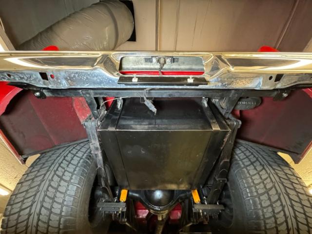 The star of the show is that narrowed rear end sporting 31x16.50R15 meats with a late 2021 date code, and tires this fat are what boyhood dreams are made of! Conditions are clean underneath with minimal surface rust and no errant fluids around. The dual exhaust leaves the headers to find Turbo mufflers, then head east and west to exit just before the rear tires, dressed in chrome tips. A tiny bit of surface rust under the passenger door but we don\'t detect any invasive rust. Suspension here includes coil springs up front and leaf springs with ladder bars out back.
