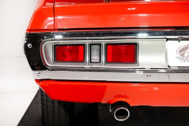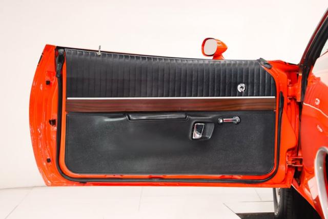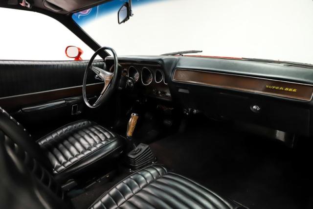 EXTERIOR: All new \"sleeker\" design for 1971. This one is extra sharp decked out with racing hood pins, racing mirrors, front and rear spoilers. It also has the very desirable N96 Ram Charger hood, the scoop opens on demand and feeds the 6-pack fresh air. The body is straight and looks great. Repainted its original hemi orange color, it\'s laid out and polished to a glass finish. The black stripes look great, especially the Super Bee logo on the hood. The windshield has been replaced, bumpers were rechromed, vinyl top looks great. The 15-inch Rallye wheels with and BFG tires look like new.