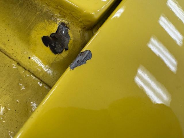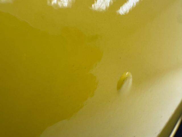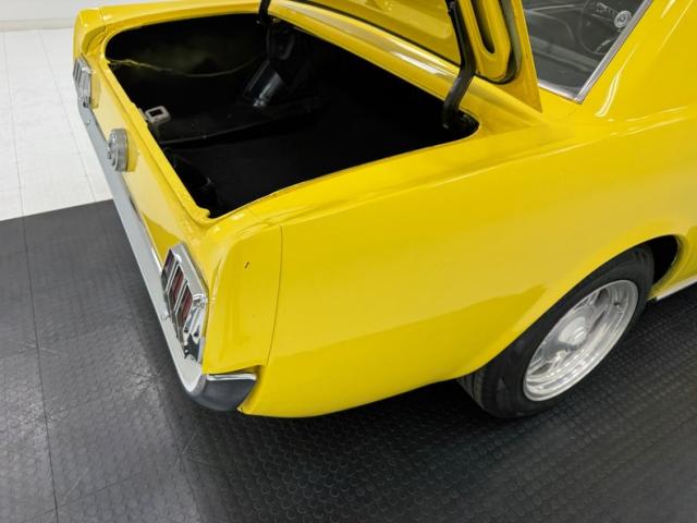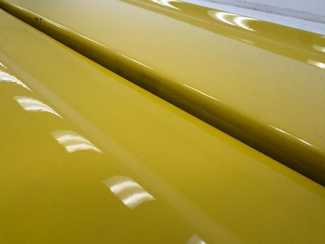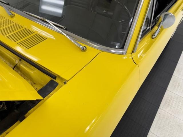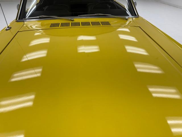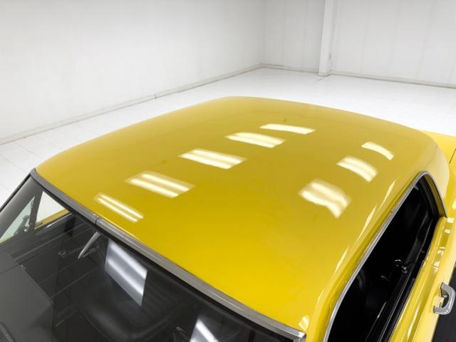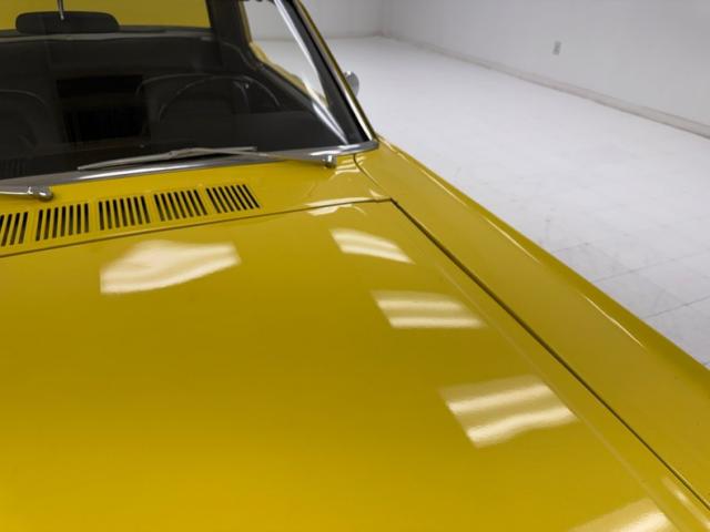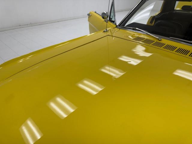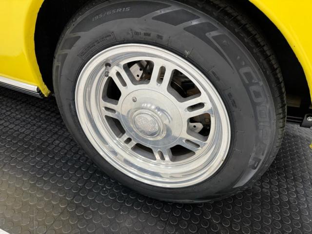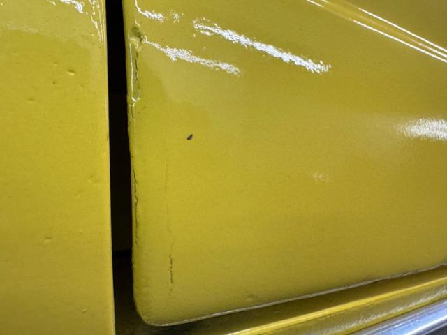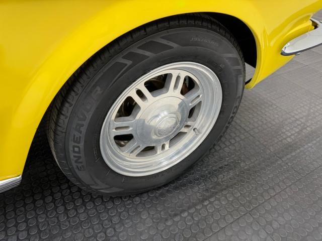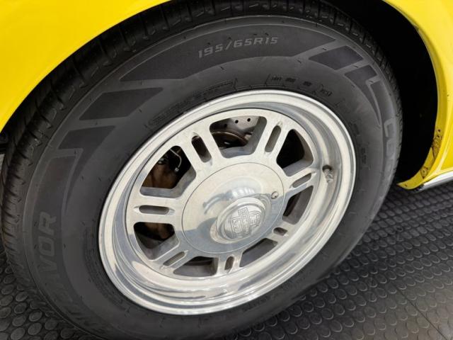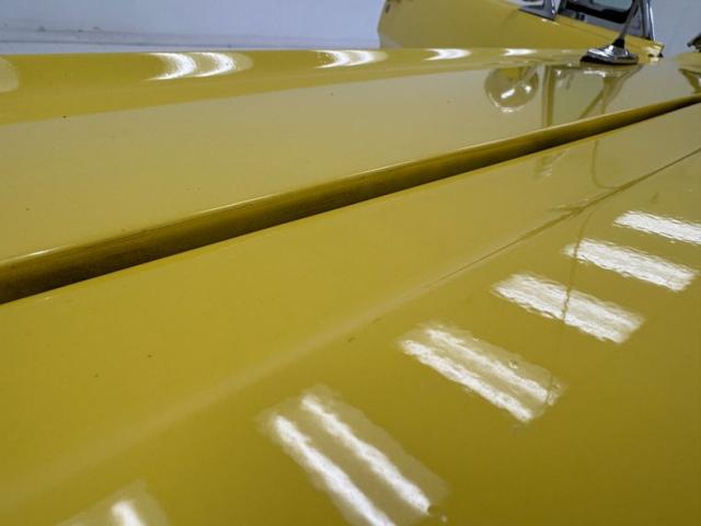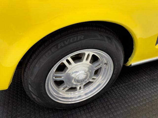 Sauterne Gold poly gives way to two stage Yellow which looks great on the car that\'s profile has been enhanced by the seven spoke 15-inch Centerline wheels wrapped in 195/65R15 with an early 2025 date code. The side body lines terminate at an ornamental three ribbed duct in the quarter panel while out back, it\'s nothing but iconic design with tail lights that can be mistaken for none other and reverse lights set in the apron. The gas cap on the latch panel breaks up the run of yellow and dual exhaust is in line with the bumperettes. The front is unmistakable as well and ranks high as one of the most popular classic cars in the history of classic cars and rocker panel trim completes the fantastic design. Imperfections include chips throughout, pooled paint on the hood, areas of discoloration, bubbling, evident filler, gap issues, visible rivets on passenger\'s quarter panel, cracking paint, and areas of under spray.