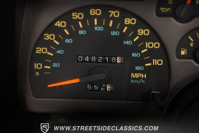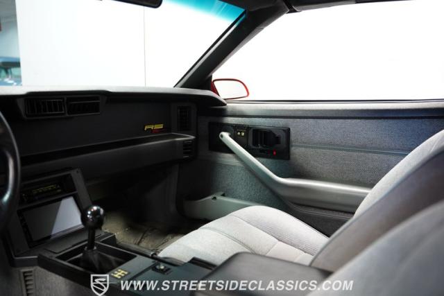 The gray custom cloth interior is a testament to \'90s GM comfort and style. The bucket seats show minimal wear, providing support and comfort for long drives. Power windows, locks, and cruise control offer modern conveniences, while the tilt steering wheel allows for the perfect driving position. The dashpad remains in nice condition, with clean, clear gauges that are easy to read. An aftermarket Kenwood touchscreen radio with Bluetooth and CarPlay capabilities brings this classic into the 21st century thanks to a custom 3D-printed bezel that maintains a factory-like fit. The door panels and center console are in great shape, and RS 25th Anniversary badging on the dash face reminds you of this Camaro\'s special status.