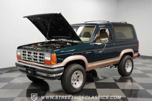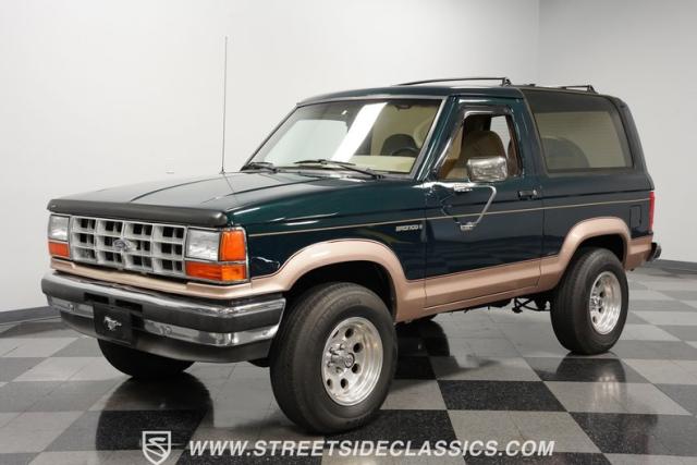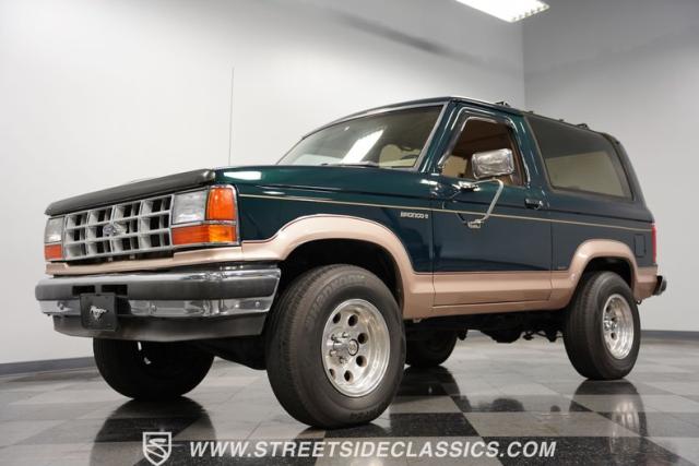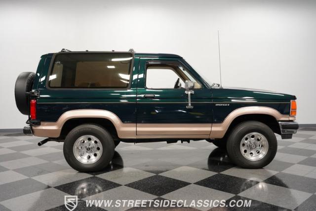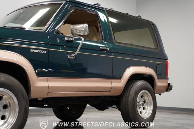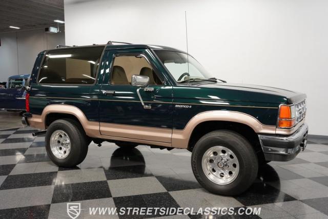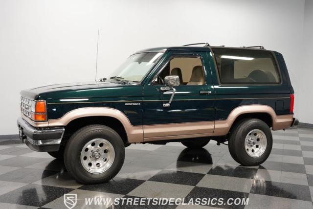 This 1989 Ford Bronco II Eddie Bauer 4x4 combines compact size, off-road capability, and Eddie Bauer luxury. Its V6 engine, four-wheel-drive system, and distinctive styling make it a versatile SUV for city streets and backcountry trails. Experience a piece of Ford\'s SUV evolution. Call today!