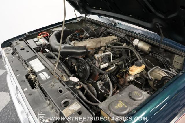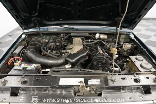 Ford\'s 2.9-liter V6 engine, paired with a 4-speed automatic transmission (AOD), delivers reliable power. Electronic fuel injection optimizes performance and efficiency. Power steering and front disc brakes enhance control, while the factory-style suspension maintains the Bronco II\'s off-road capabilities. A single exhaust system crowned with a chrome tip adds a subtle growl to this compact SUV. The engine bay is clean and well-organized, reflecting the vehicle\'s overall condition. This powertrain combination balances on-road comfort and off-road capability that defines the Bronco II\'s versatile nature.
