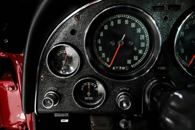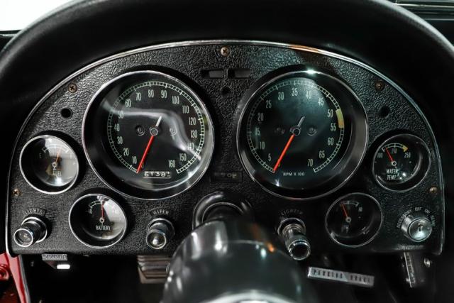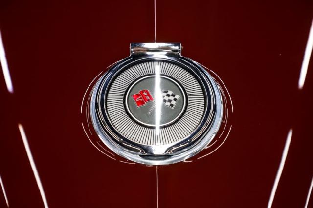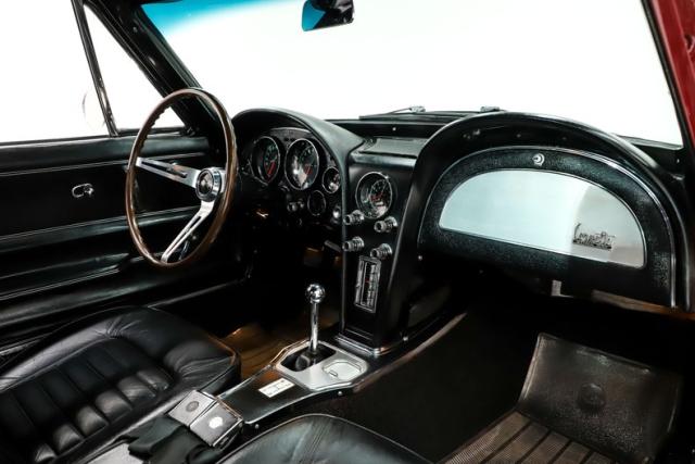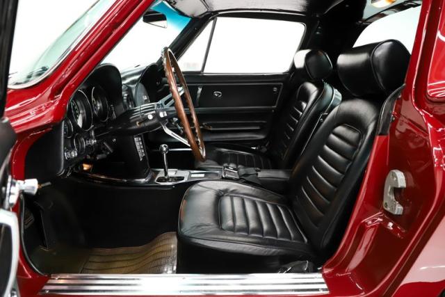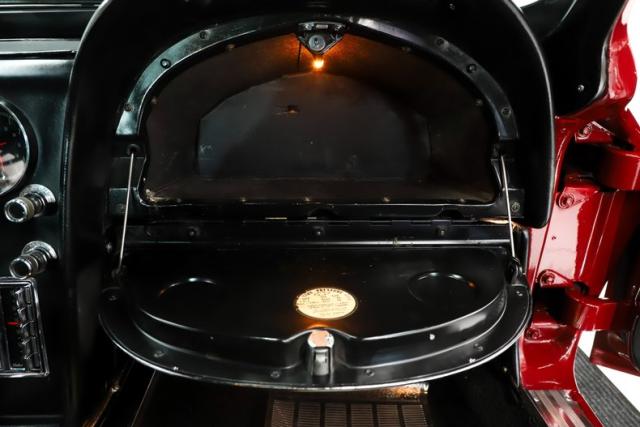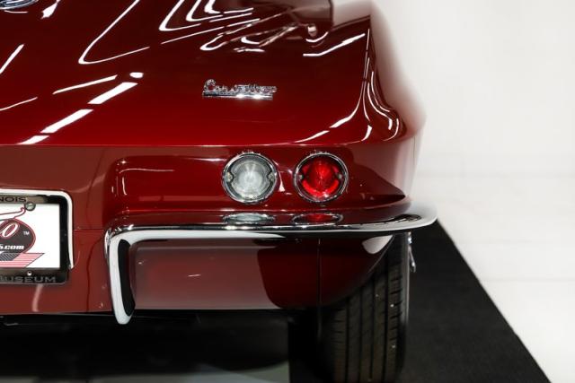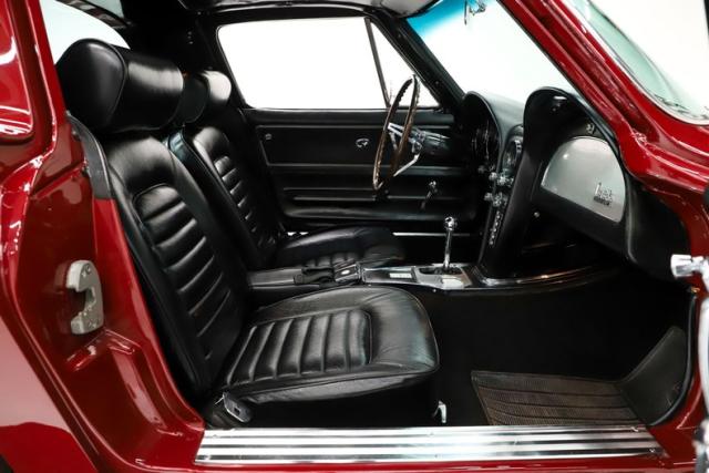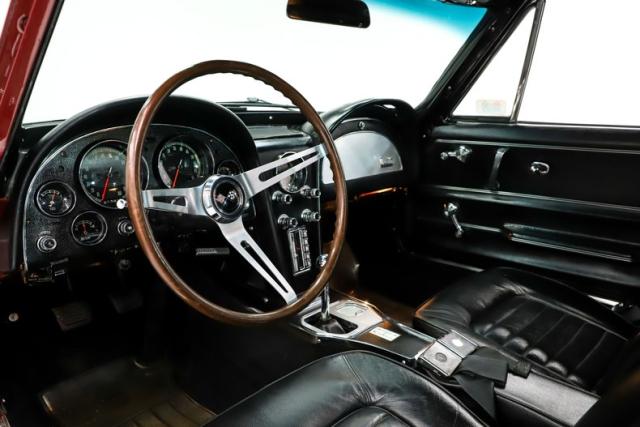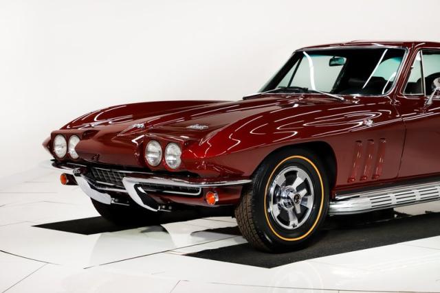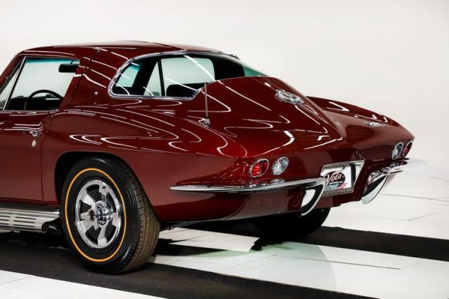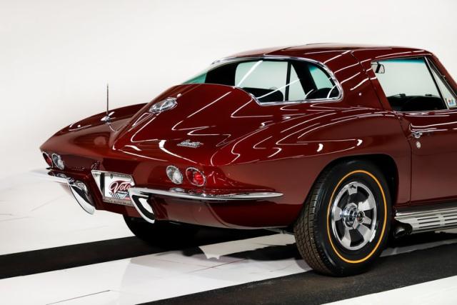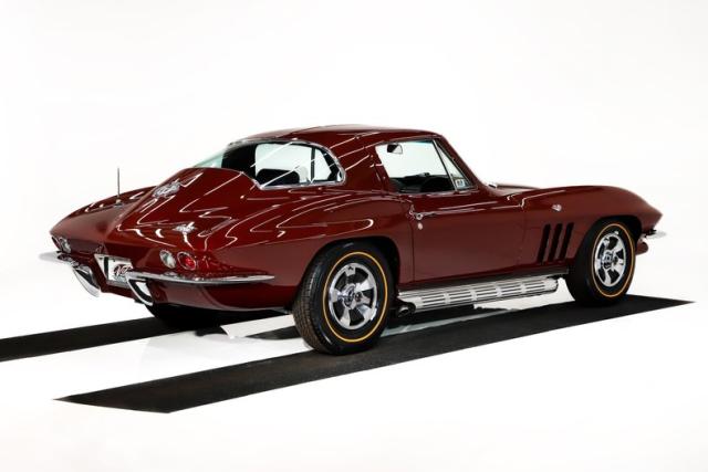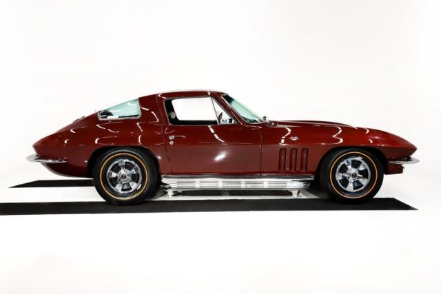 EXTERIOR: Few cars can match the lines of a C2 Corvette coupe, and this example is exceptional. Believed to be a no-hit, all-original body, it shows no signs of damage or stress cracking, and the panel fit is outstanding. The doors shut with a reassuring precision, and the headlights operate exactly as they should. It has been refinished in its original Milano Maroon Metallic, applied evenly and topped with a deep, glossy clear coat. The bumpers have been rechromed, and it retains the correct antenna and bowtie mirror. Factory side exhaust-an absolute must, in my opinion-adds both visual punch and an unforgettable sound. It rides on 1965-style goldline tires updated to modern radials for better drivability, mounted on the proper spinner hubcaps.