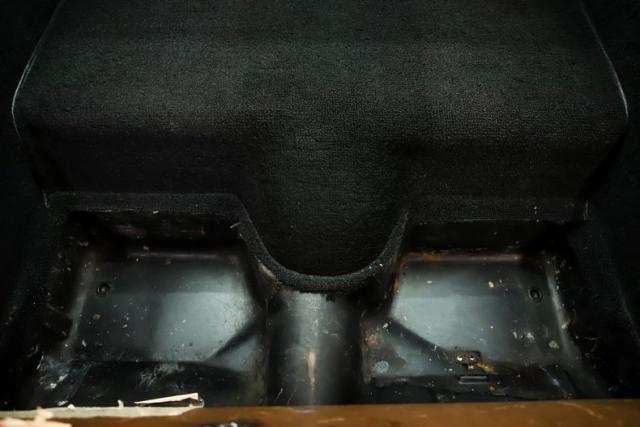 UNDERSIDE: Underneath, this \'66 Corvette is so clean it looks like a frame-off restoration-yet it\'s an unmolested survivor that has been exceptionally maintained and detailed. It retains its factory four-wheel independent suspension and four-wheel disc brakes, all in excellent working order. The frame and chassis components are smooth, properly prepped, and painted, while the fiberglass floors are pristine with no damage. Even the spare tire carrier is remarkably clean. Looking up at the drivetrain, the engine is tidy and correct, including the proper starter and the rare, original three-speed manual transmission. Out back, it still carries its original coded and dated 3.36 rear end, completing a remarkably authentic and well-preserved undercarriage.