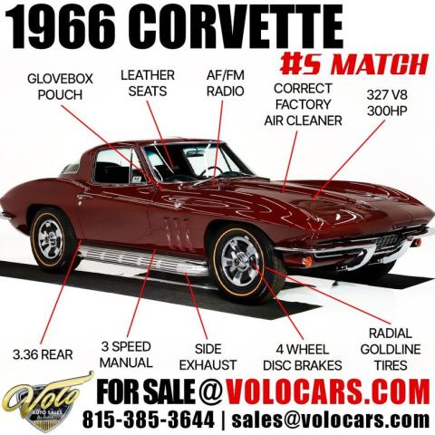 INTRODUCTION: One owner from 1970-2025! #s match and documented with protect-o-plate. 61,000 actual miles, no rust issues, mint original body. This one is a sweetheart! Sold new to Sue Welch at Phinney Chevrolet, NY on 5-7-66. Rare, only 564 Corvettes were built total in 1966 with a 3-speed!