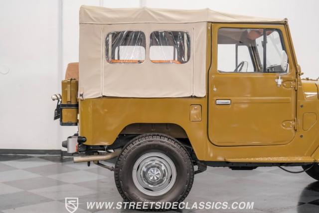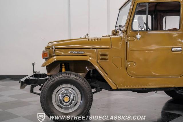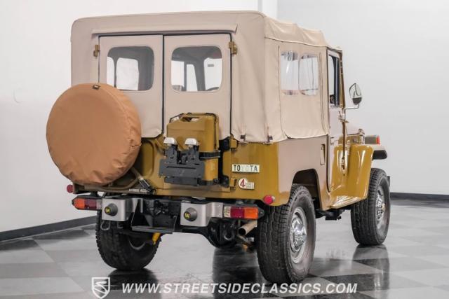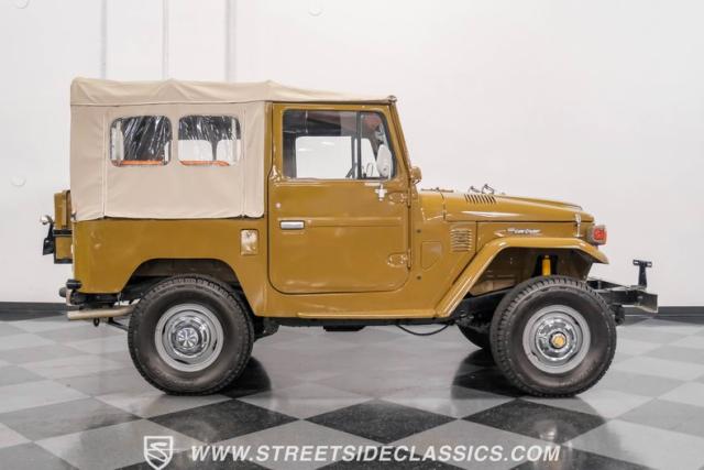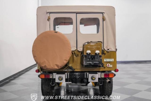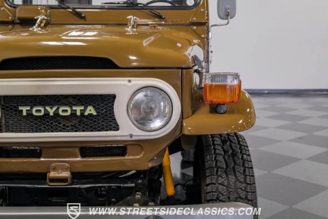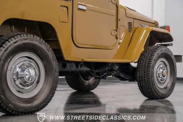 This 1978 Toyota Land Cruiser FJ40 sports an olive green paint job that screams rugged capability. Its boxy shape and removable top make it instantly recognizable as an off-road icon. Solid bumpers guard the front and rear, ready for action on any terrain. The 15-inch wheels are wrapped in aggressive 31x10.50R15 BFGoodrich All-Terrain T/A KO2 tires, giving this FJ40 serious ground clearance and traction. Clear glass all around provides excellent visibility for navigating trails or city streets. This particular FJ40 underwent a frame-off restoration by a previous owner, bringing it back to its former glory.