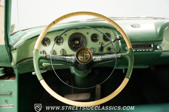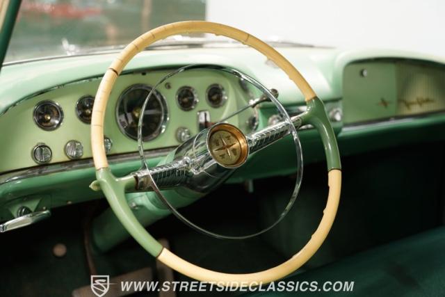 This 1955 DeSoto Fireflite has green and white paint, a 291 Hemi V8 engine, and an interior that embraces a bygone era for those who appreciate the blend of performance and timeless elegance. Call today!
