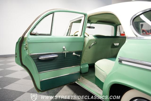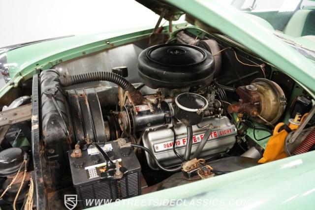 Step inside, and you\'re greeted by green bench seats that are all about comfort with a side of nostalgia, thanks to their well-kept fabric and that old-car smell we all secretly love. The dash, the gear selector, and that uniquely DeSoto gauge cluster haven\'t lost a bit of their charm, each telling their piece of this car\'s story.