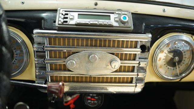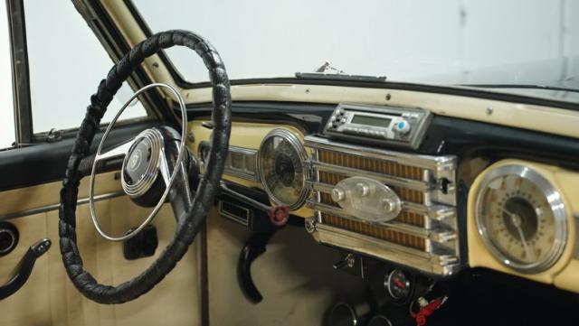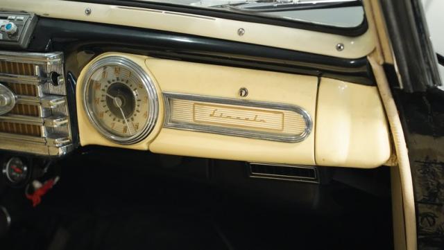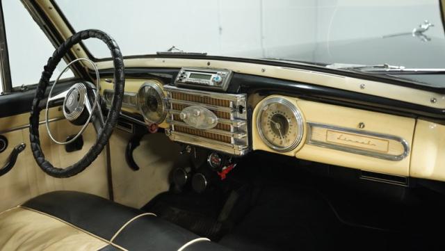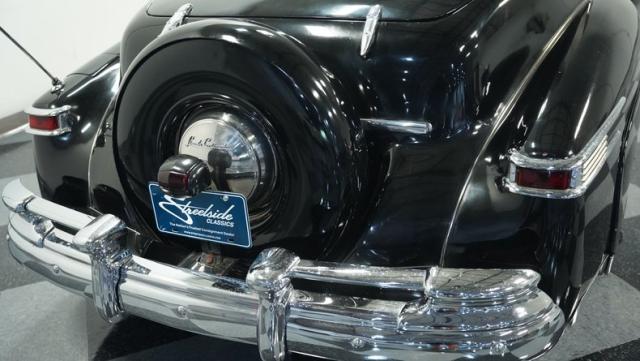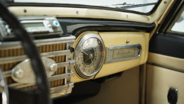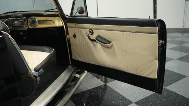 This 1948 Lincoln Continental coupe is a true rarity, representing one of only 847 club coupes built in the final year of the first-generation Continental. Its black exterior exudes a timeless elegance that defined post-war American luxury. The 15-inch wheels, paired with Coker Classic 7.80-15 tires, give this Continental a commanding presence on the road. Side pipes and chrome bumpers accentuate its sleek profile, while the vinyl top adds a touch of refinement to this classic silhouette.